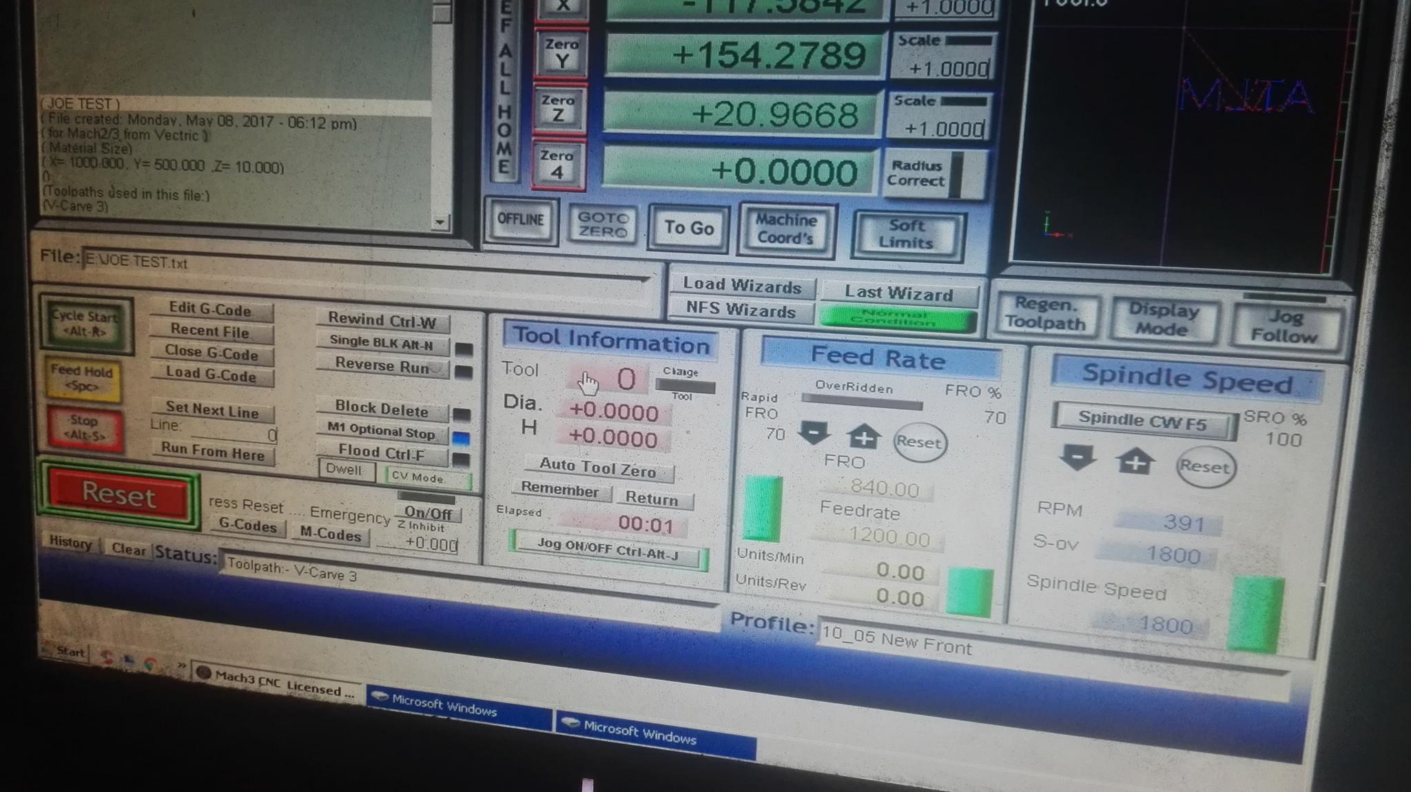 Hi can anyone tell me why my feed rate override is allways flashing on mach 3 ? ThanksClick image for larger version.