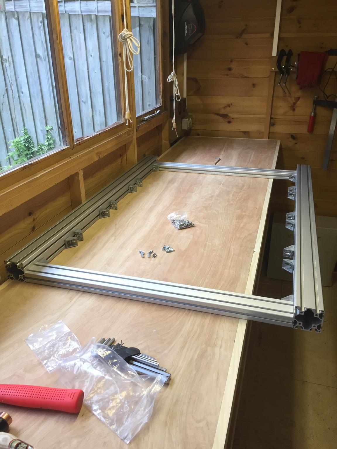 So I've been ordering some profile and some ally, set to work with a bench drill and made some headway with my build. As it was you lot here that inspired me to get on with it all those years ago I though I'd let you know how I've been getting on and share my findings and exasperations! So here's some photo's to tell the story so far.