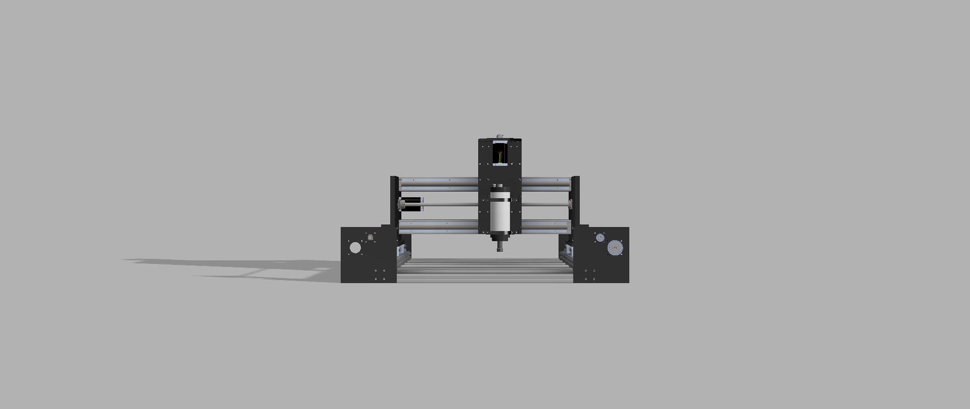 Here are some rendered drawings of my design. Some bits are missing like the motor and pulleys on the second X axis ball screw but they are identical to the other side only mirrored so you should get the idea.