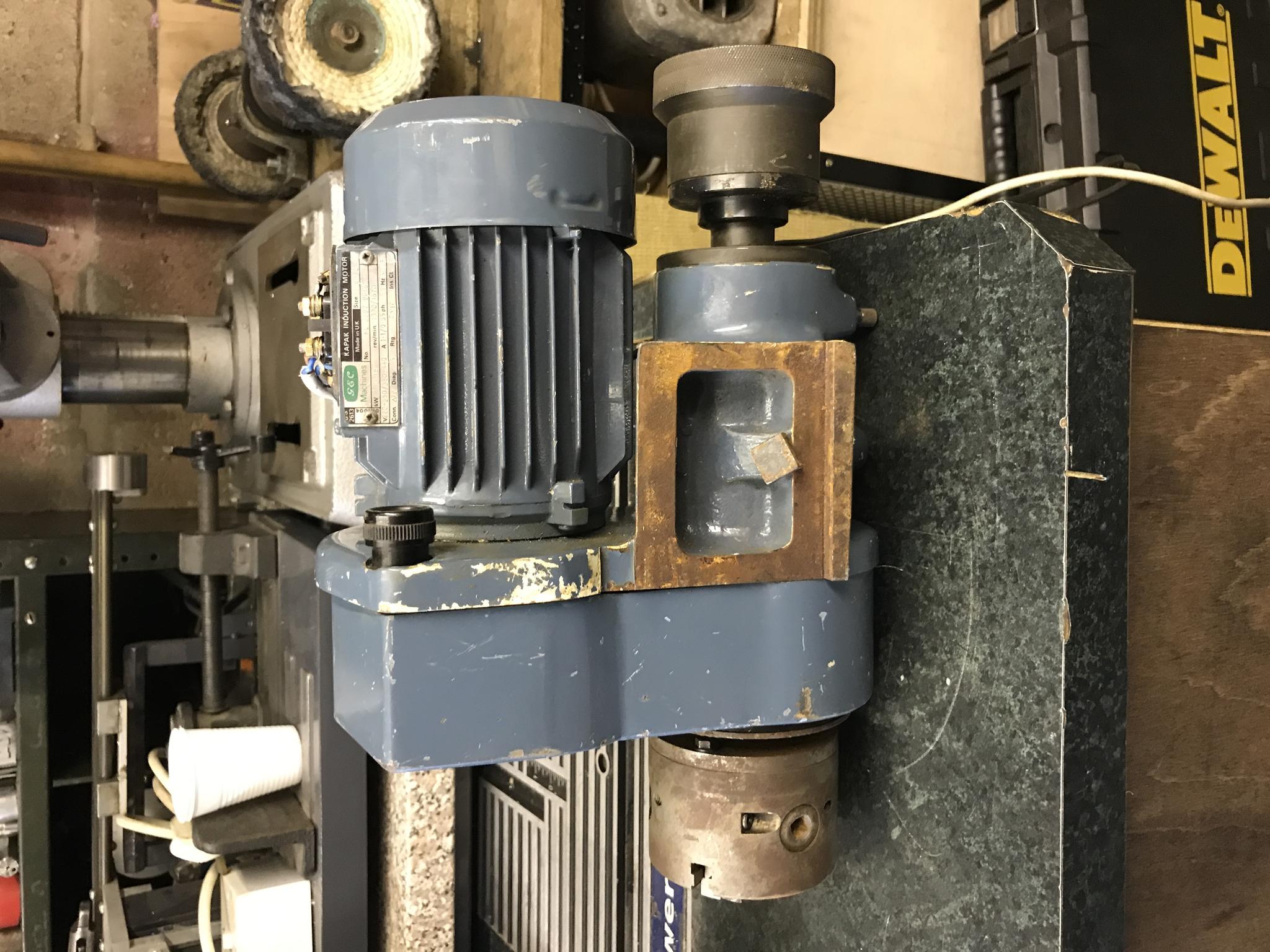 There are some other small parts in a wooden box, like a small spring loaded tailstock and a handful of what looks like Myford collets ? It looks to originally have been 3 ph, but now looks like someone has done a home job to convert it to single ph as there appears to be wiring that would suggest someone has added a capacitor to it. Anyway, if anyone could shed some light on it I would be grateful.