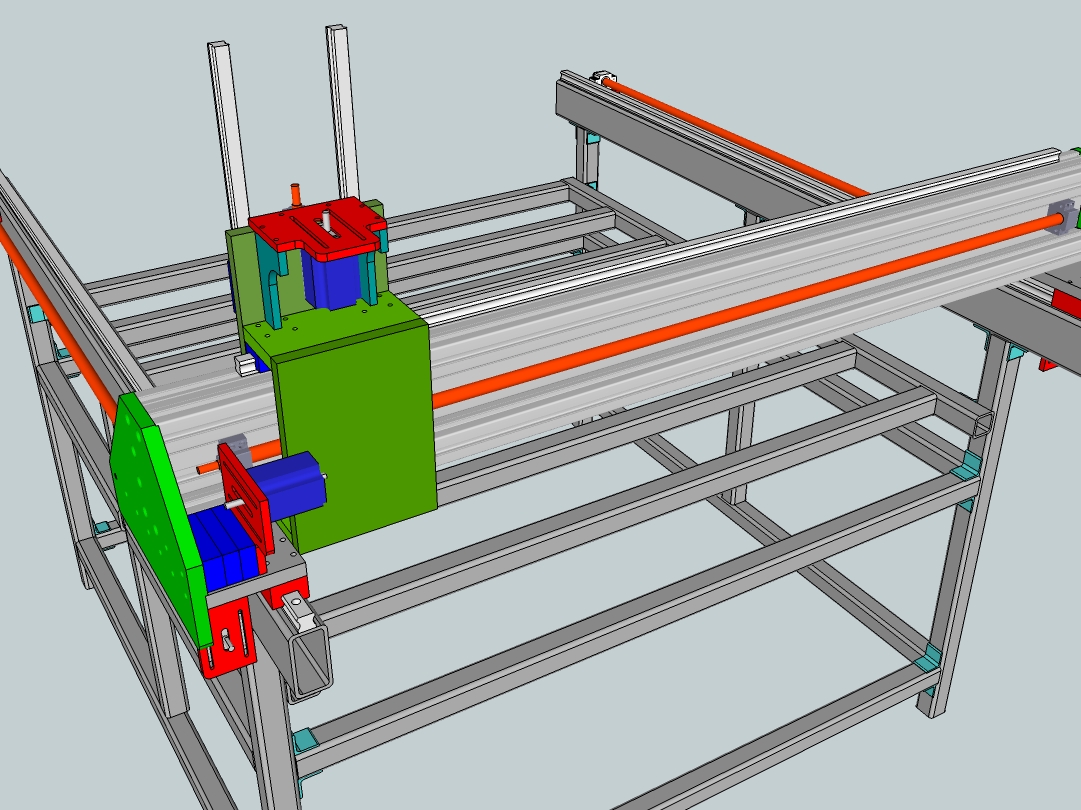 The frame of the machine is to be a mixture of welded and bolted 50mm x 50mm SHS and the X axis rail supports 50mm x 100mm RHS, but this requires further development as there is no diagonal bracing.