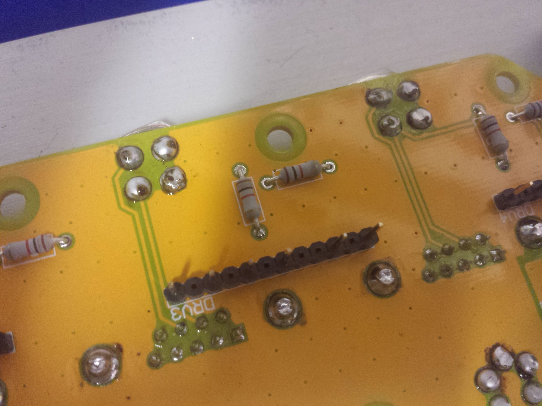 06-07-2017 #24Ravi I would re solder (re flow all the motor connections that look and are bad on that board) as they will give you trouble and it si possible that could blow the drives if there is a dry joint. The resistors look a lot better.First job was to solder the pins to the board for the motor connections and other plugs which in not sure of lol