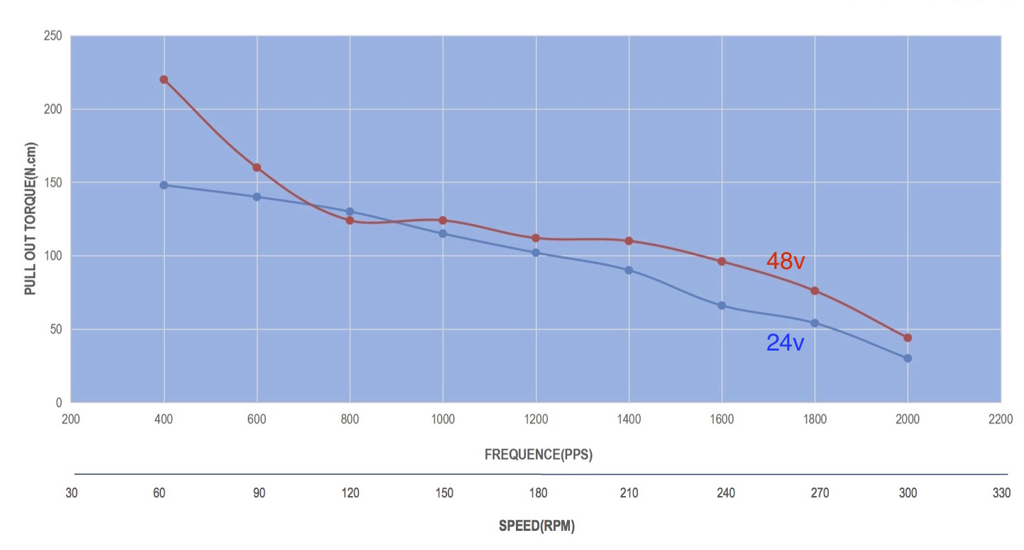 I have to say all this stepper and servo stuff is new to me. I'm very familiar with squirrel cage motors and vfds, but steppers, and now servos are a very steep learning curve. I know what you mean about the Clearpath graphs, but Teknic have stated that they are servos and not steppers. Their torque curves are certainly much more healthy at speed than any stepper graph I've seen (which admittedly isn't that many). Certainly when you compare the torque/speed graph of the Clearpath 2.04 Nm (rms) (CPM-SDSK-3421S-RLN) servo I was thinking of buying to that of the Astrosyn 4.8 Nm (holding torque), there's no competition. Where the Clearpath has no problem producing its nominal rms torque at 1000rpm the Astrosyn has fallen to something in the region of 0.9 Nm at around 3000 steps/s (900rpm).