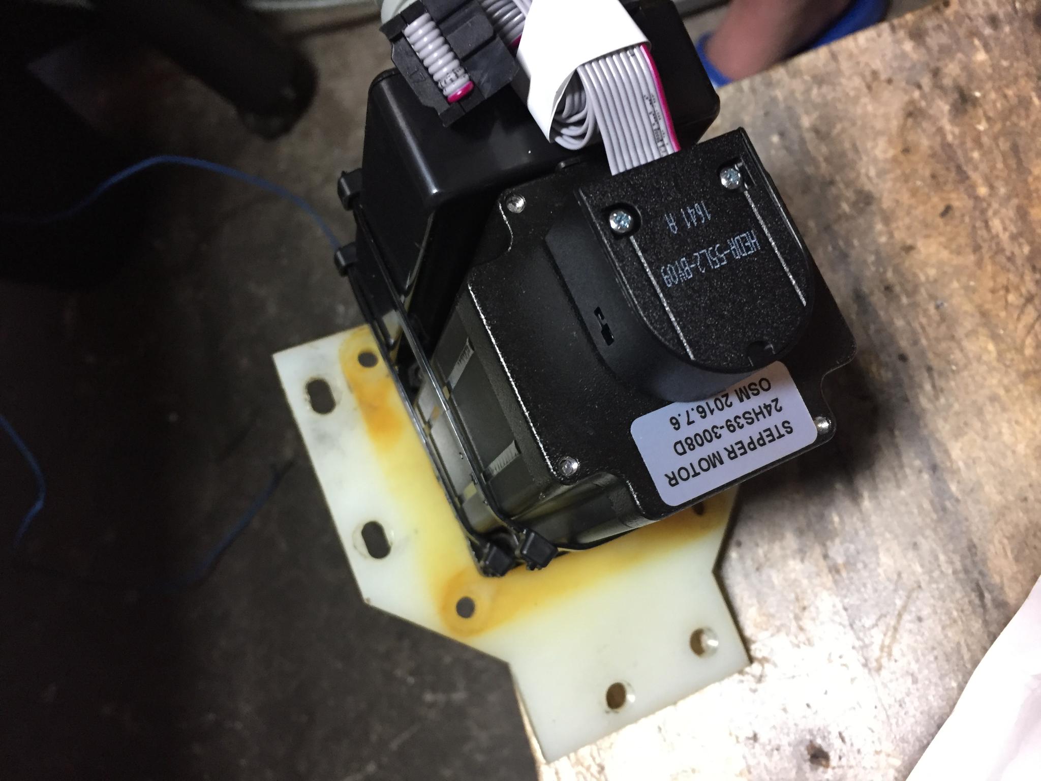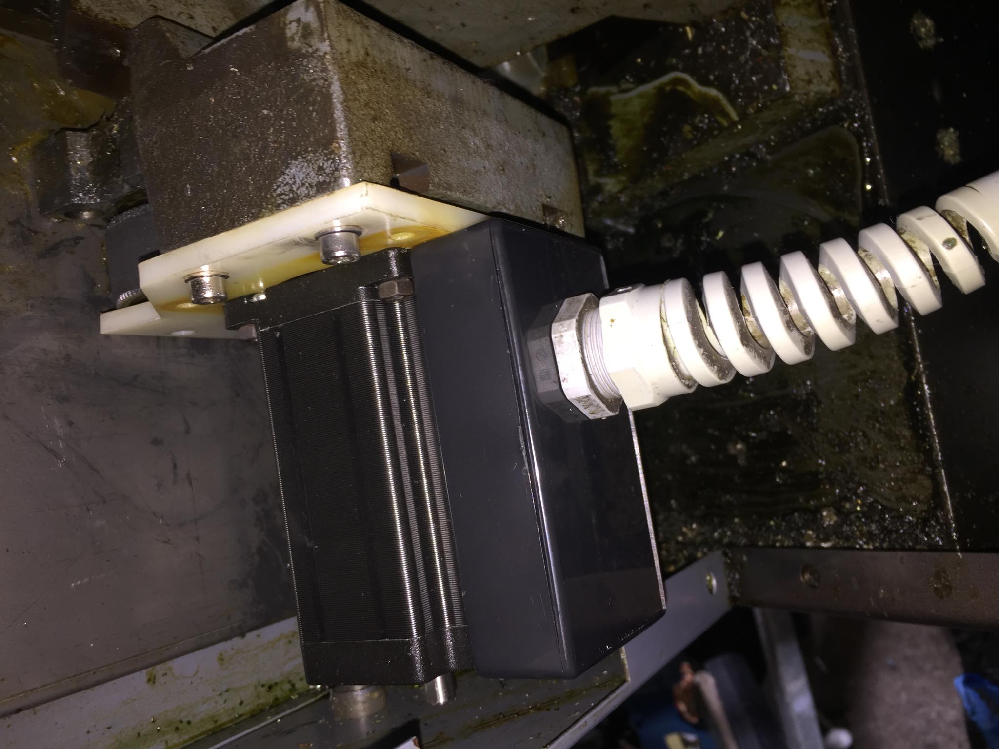 The original step motors had a 9.5mm shaft, so made made some bushes to fit the new shafts which are 8mm. Small abs enclosures hide the wires inside which connect to the original stepper cables. I'm running these 2 phase 8 wire steppers in bipolar parallel configuration. I re-used the original stepper mountings, all that was needed was new hols for the bolts.