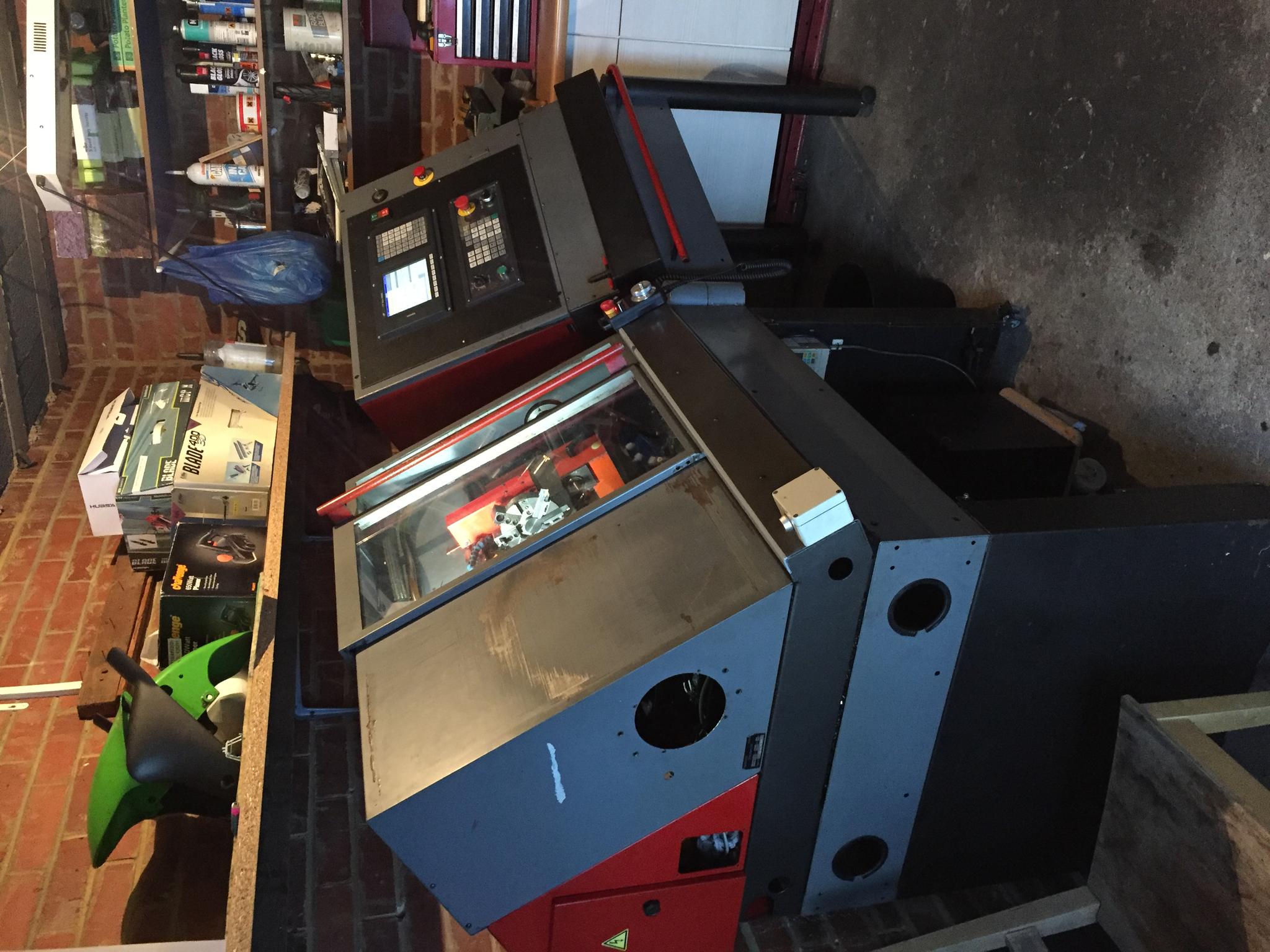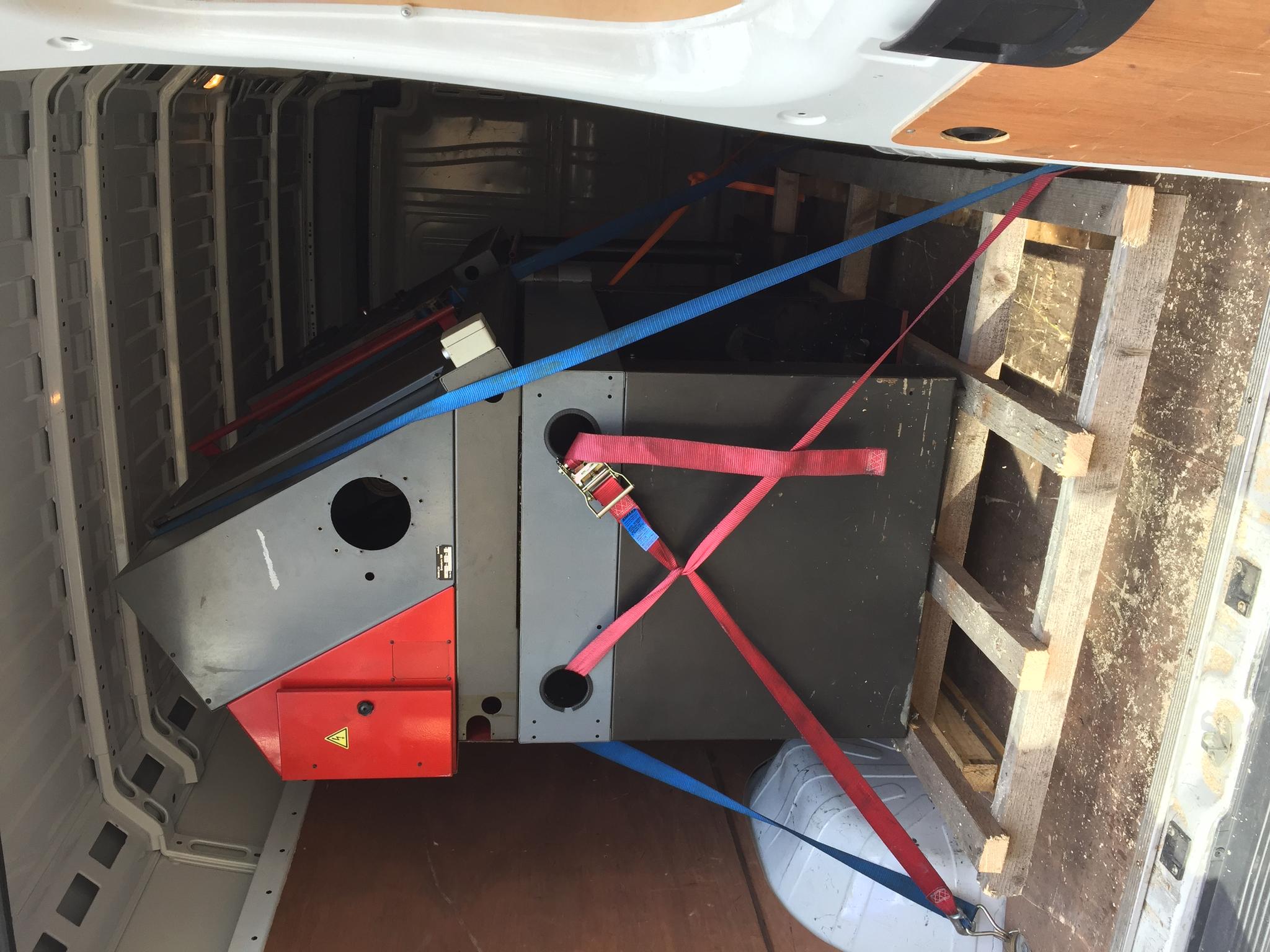 When I bought the machine I hired a large van and the fella I bought it from used a forklift to load it, so I took the machine to my workplace and used the forklift to unload it and craned it onto 2 euro pallets and then I had a man with a tail lift Luton deliver it to my home. I borrowed a pallet truck to move it into my garage workshop, however having returned the pallet truck I had no way of moving it around except jimmying it with a long 2x4, it weighs about 370kg! so I ended up getting some heavy duty twin wheeled braked castors, now I can move it around should I need to be in the rear for servicing or repair.