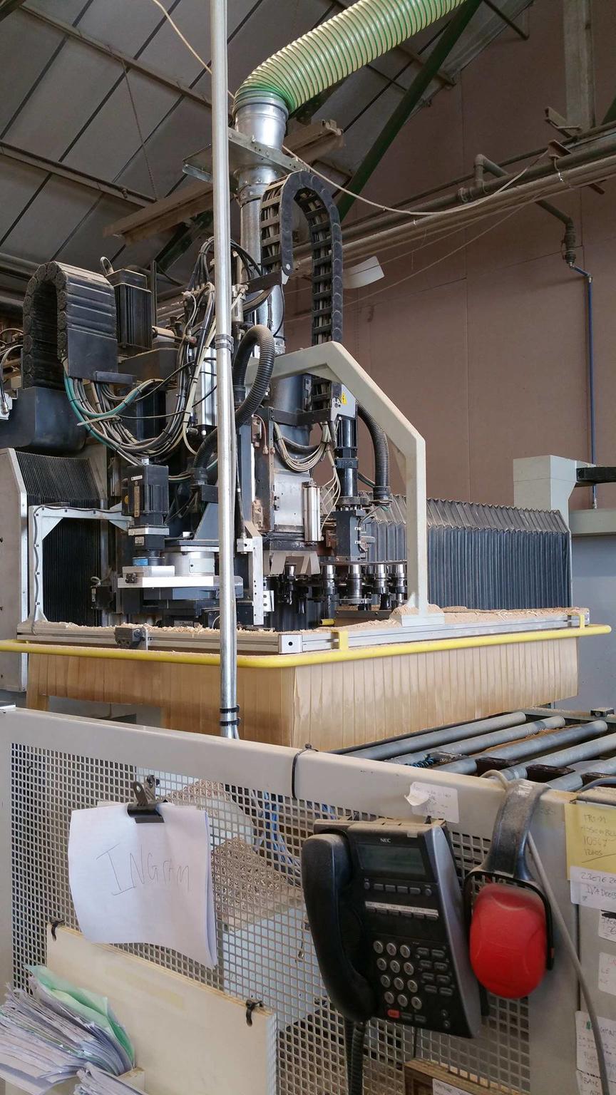 Here are some pics of the 2 Bigger Machines and an example of the Vacuum Pods. The Larger Through feed machine has a 3200 x 2000mm workable area (depending on which tool your using in the Horizontal / Arbitor A Axis), It has a 16 Space Carousel Tool Changer. It has a "5th Axis" which actually only controls the mobile vacuum pod row.