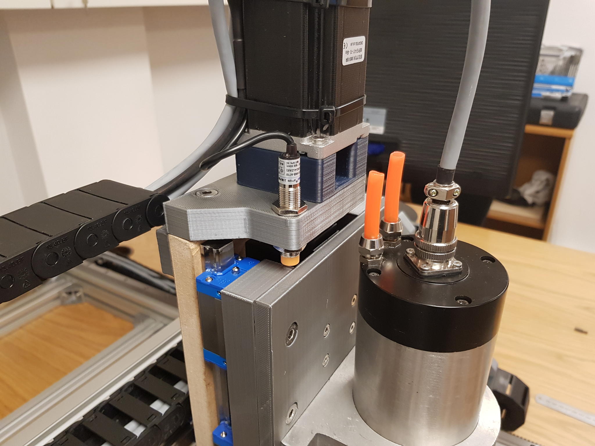 Havn't had as much time as i'd hoped the last few weeks to get much done, got all of the stepper wiring done, the cable drags turned up which meant i could get the lengths correct for the cables. I now have all Axis moving which is a nice milestone in the build. Ordered some Inductive Proximity sensors to act as limit switches, they seem to activate about 1.5mm from Aluminium, which should be ok for me. I need to do some research on the controller, as it has Terminals for Min, Max & Home for each Axis, what would be the scenario where you would have Home different to Min? Do some machines have Home at the Max or maybe Bed Centre?