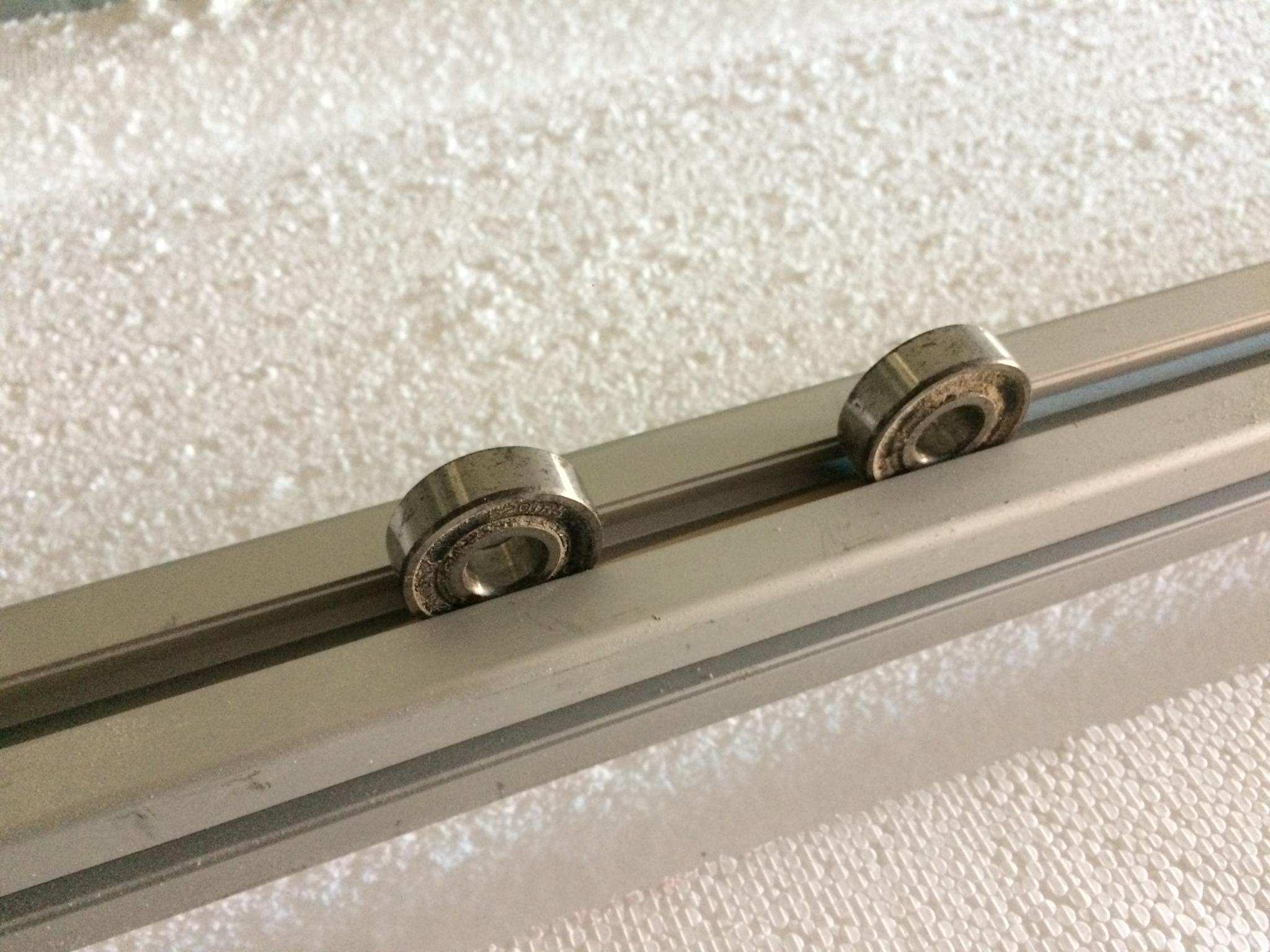 If I can't find some linniar rail at the right price I will probably go for a aragement like this but with a deralin caridge that houses the bearing but allso as a guide even though the bearings are almost a perfect fit width wise. I will find it hard to find the cost saving of linniar rail viable over the time it will take to design build and set up my own method