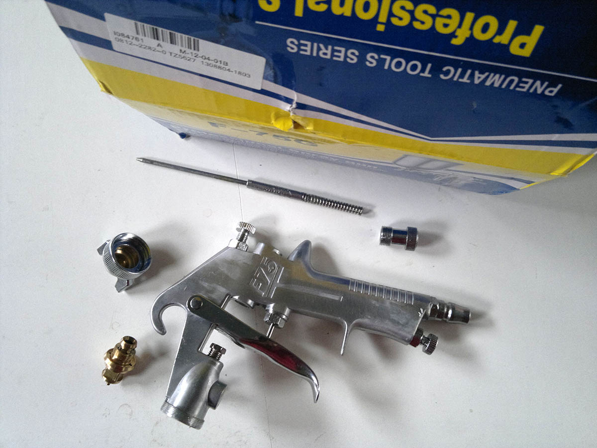 My best acquisition was given to me by a neighbouring workshop owner, who said it didnt work. I plugged it in to air, undid all the valves and slowly homed into an acceptable pattern by adjusting them down. All was fine, so I took it back to give him the good news and found that he had just loaded up a brand new £300 Iwata!