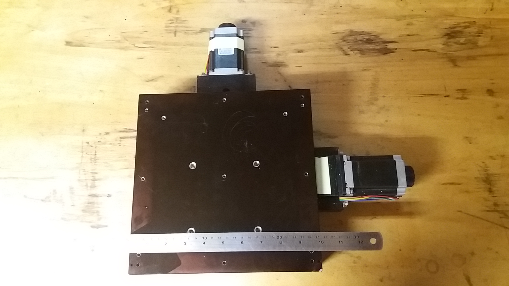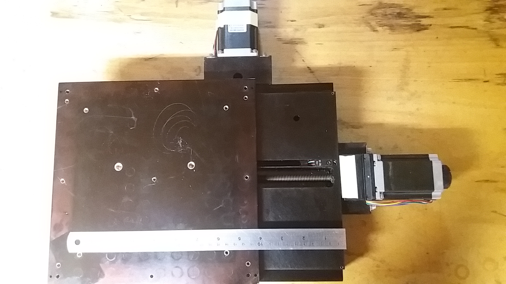 the xy table is made by NEAT, it is solid billet ali and weighs about 15kgs, it has 8" travel, the table is 10" square. The lead screws have a 2mm pitch. All the bearings are adjustable for backlash, at the opposite end to the stepper motor there is a dual ball bearing configuration that you pre load them against each other