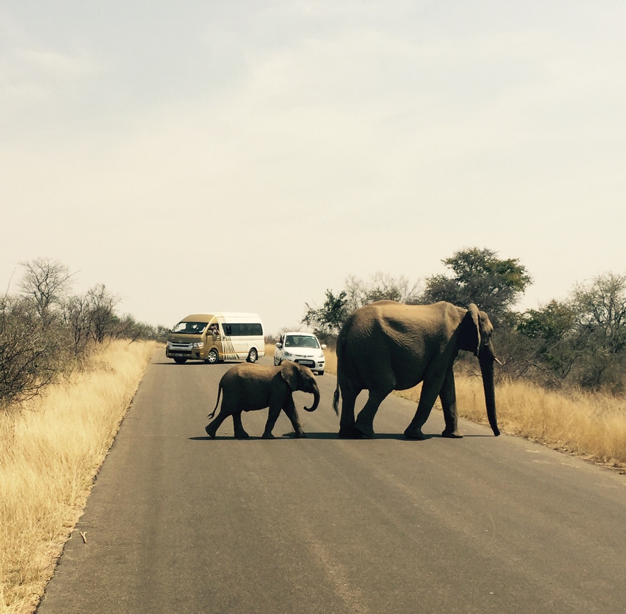 Very nice! Looks like Kruger Park -- not often one gets to see elephants crossing the road :)
