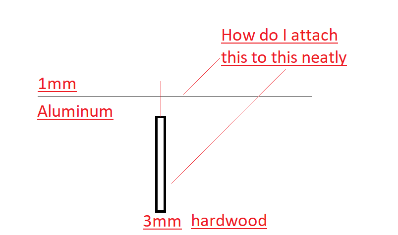 How to attach 1mm aluminium sheet to 3mm hardwood neatly.