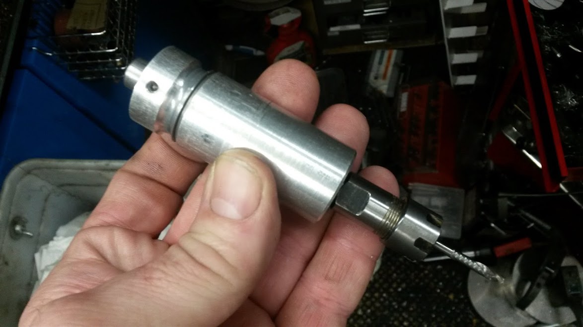 Here's my set up fitted with the ER11 Milling Spindle which I built, it's genuinely an afternoon job and by applying the principles in Harprit Sandhu's book on spindles I came up with a design using a pair of bearings at the nose which are bonded to both the spindle and sleeve and a top bearing which is bonded to the spindle only and is a sliding fit in the sleeve.