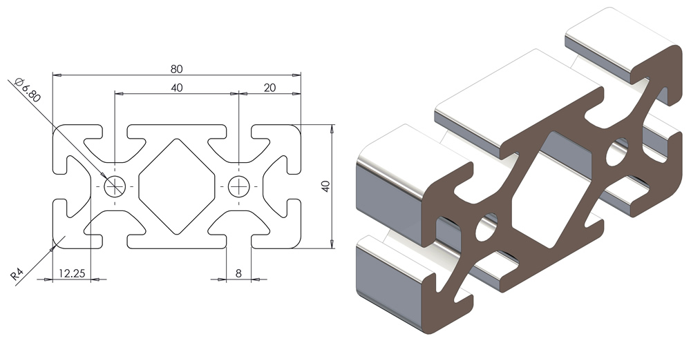 Steel Box section. The strongest and cheapest, but also least easy to use option and the heaviest. Steel box is not extruded, it is rolled from sheet which means it has rounded corners and the face is not 100% flat. Do not expect to bolt profile rail directly to this and get a smooth running action. It needs to be levelled in some manner. One popular option is to use self-levelling epoxy on the face for the rails. Another option is to bolt on a thick plate of cast aluminium. If your goal is to build a wood router then go for aluminium and save yourself trouble.