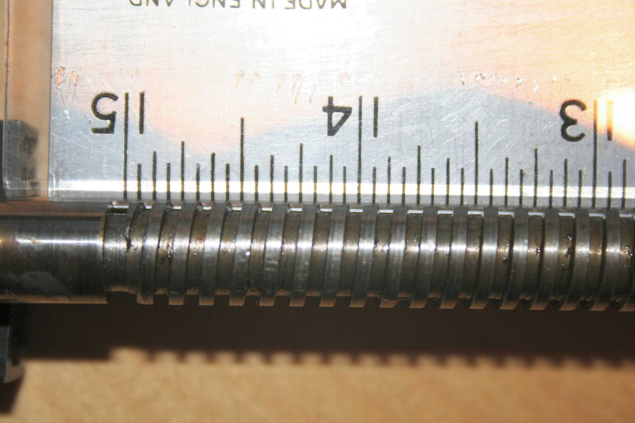 Square thread of 8 tpi means it has crests and spaces of 1/16" equally, second pic shows ? the spaces wider to the left of the nut ?