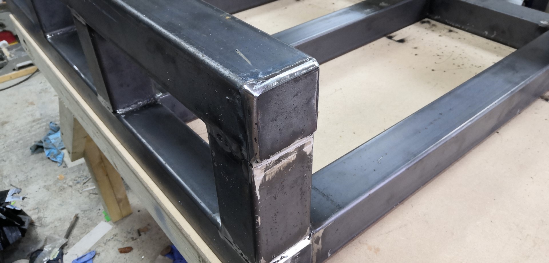 Frame is 80x80x3 welded steel box.