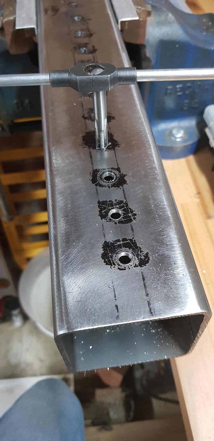 I never tapped the extrusion I used an impact driver to force the M12 bolts into the extrusion, I used corners and T nuts to keep the extrusion straight (My frame is 9045) but the gantry I recessed the aluminium into the aluminium plates by 5mm each side (20mm thick plates) which kept the gantry straight whilst I bolted it on.