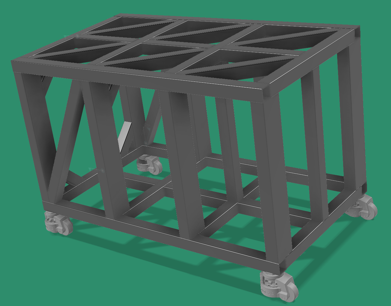 Painting into a corner?, that's kind of where I was losing confidence with the number of acute angles for bracing - I can see it being a bit of a git to weld all that and it's starting to feel heavy just on screen. And, at the end of the day how much is really necessary. That's when I tried to google about the effects of triangulation and bracing, but I think I'm using the wrong search strings.