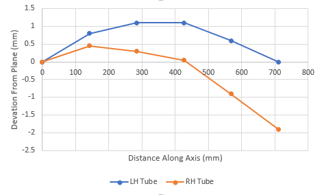 Both tubes are now convex, and not planer. Measurements are below. Max deviation is 3mm!