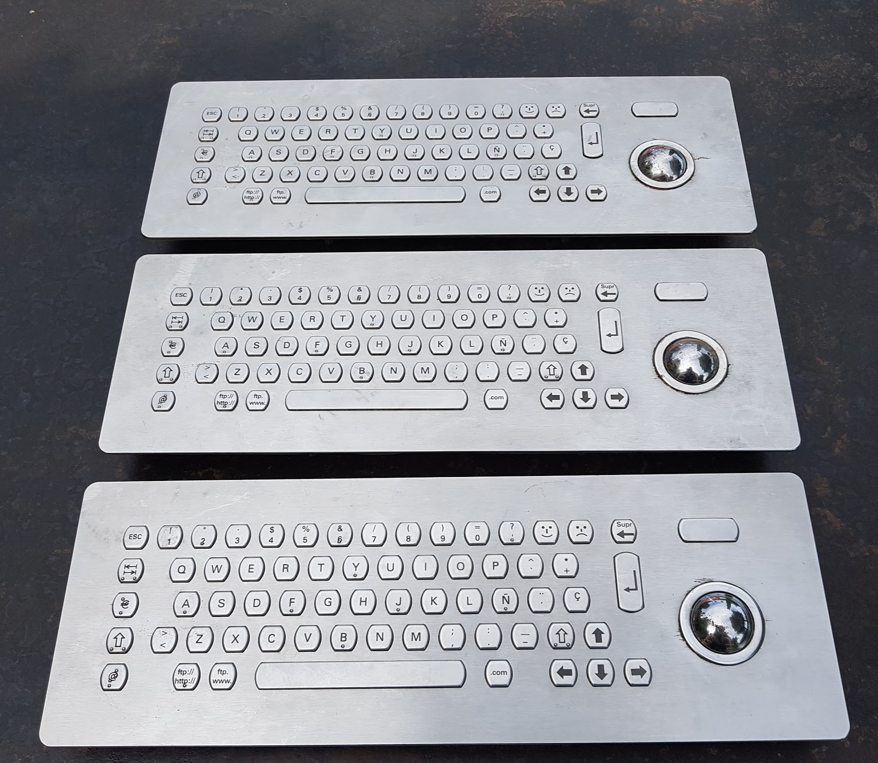 I think they could be ideal for nice CNC enclosures with screen or similar stuff. Nice overall shape, some marks and even a little rust on the stainless trackballs, nothing that could not be easily cleaned or polished. The keys themselves seem unused.