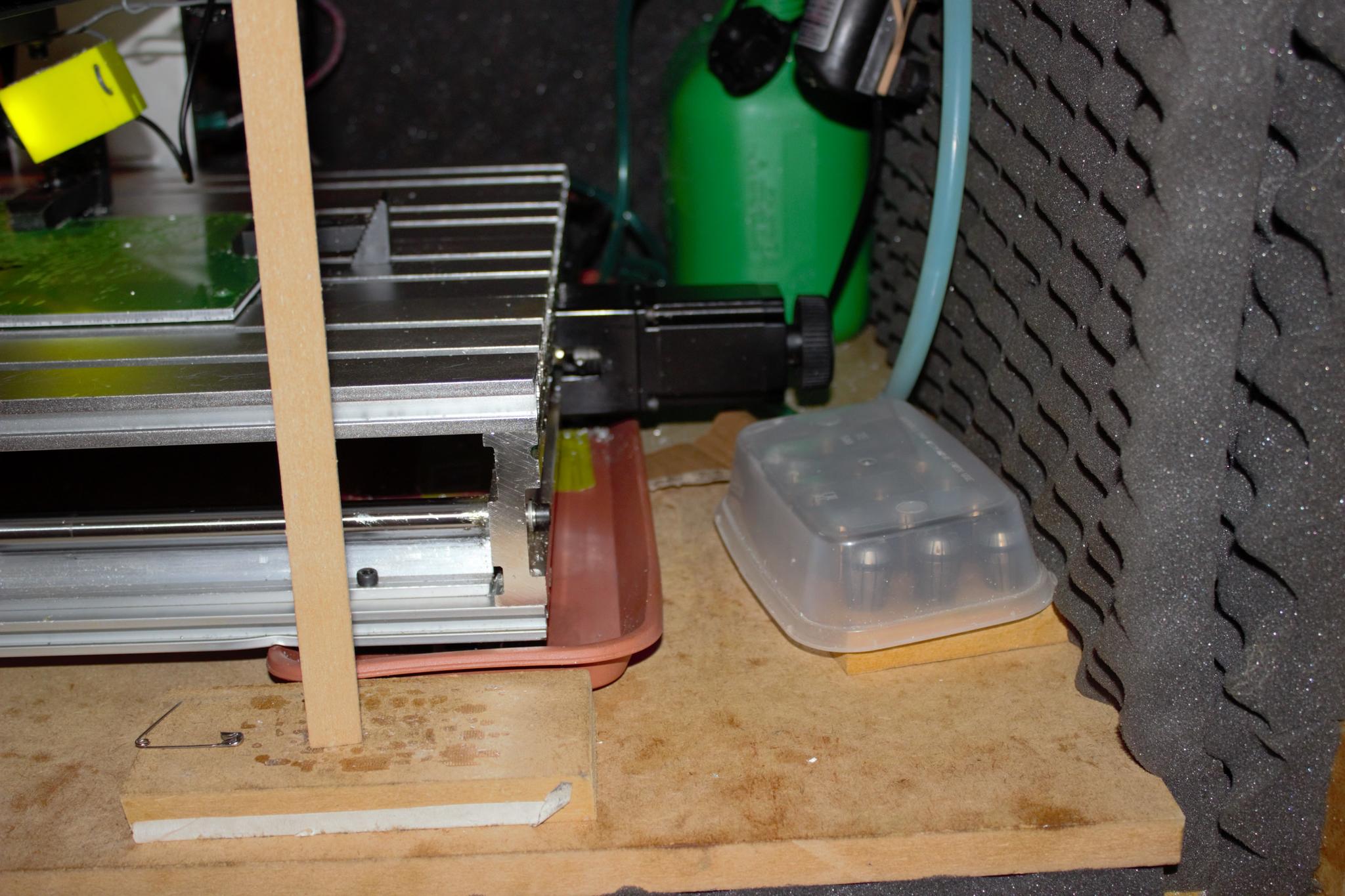 I have a hobby type CNC which I use to mill quite a bit of aluminium for hobby use. I live in a rented flat so doing this work without damaging the property or disturbing neighbours required a dedicated set up. This setup consists of following: