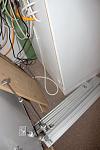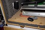 I had my CNC box sit on top of this vacuum cleaner box. There is a hole in the bottom panel of the CNC box which align with a similar hole in the top panel of this vacuum cleaner box. I had vacuum cleaner hose routed through these two holes to the inside of CNC box directly. This allowed me to such any chips/dust directly to the vacuum cleaner while CNC was in operation without leaking sound. The vac box has two compartments. Left lest compartment can hold a fairly large compressor and is sound proofed. It also has two 13A power outlets inside. A switch located outside can be used to switch on/off power to this outlet. The right chamber is not sound proofed and used as a storage. This whole box sits on top of 8 heavy duty wheels, so it can be moved easily.
