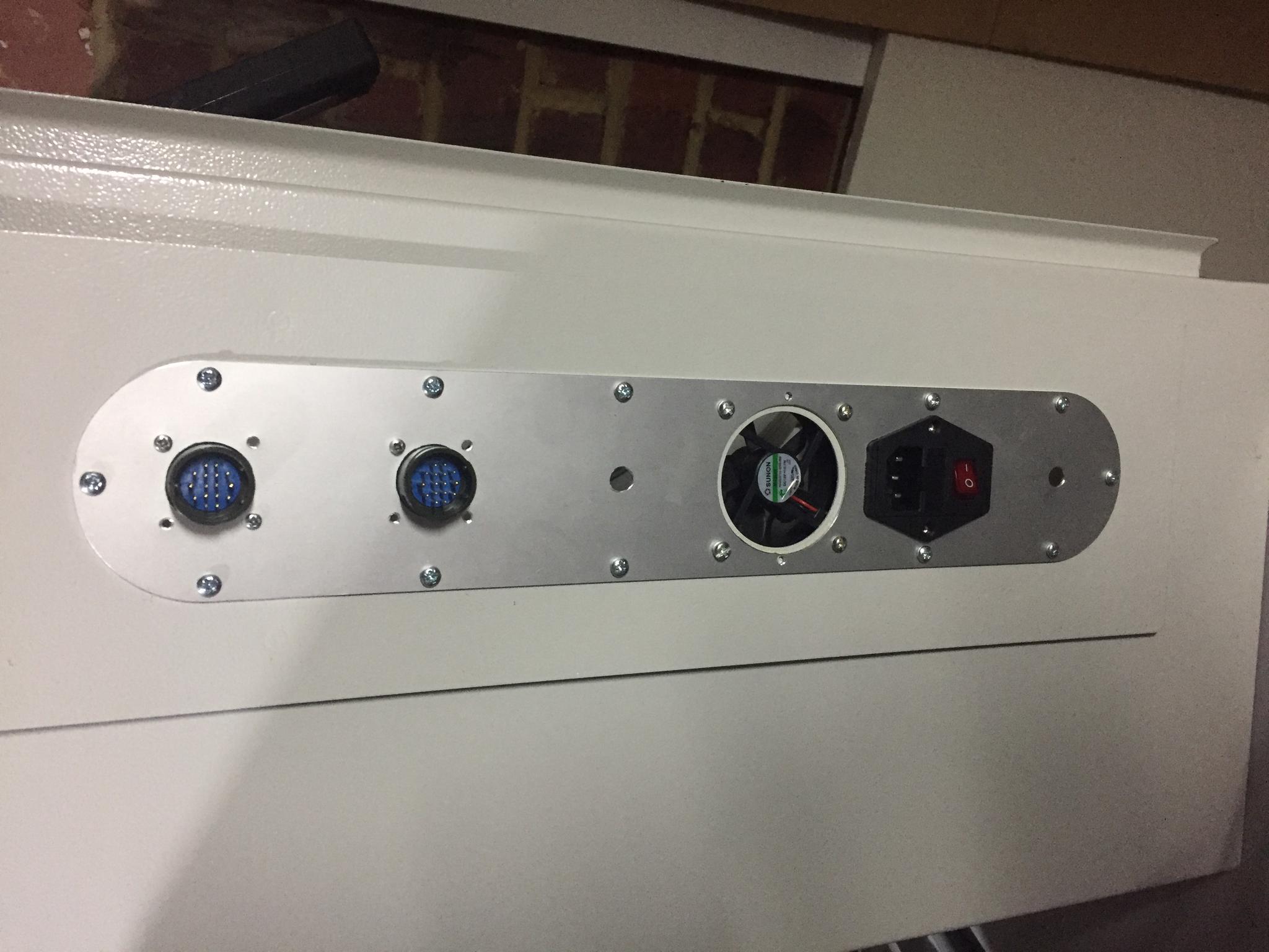 Today I temporarily plugged in the machine and configured linuxcnc. I needed to cut an i/o plate for the cabinet. Specifically the holes for ac input, cooling fan and plugs for the machine. I had previously machined the outside profile on a machining centre as it was too big to machine on my denford mill.