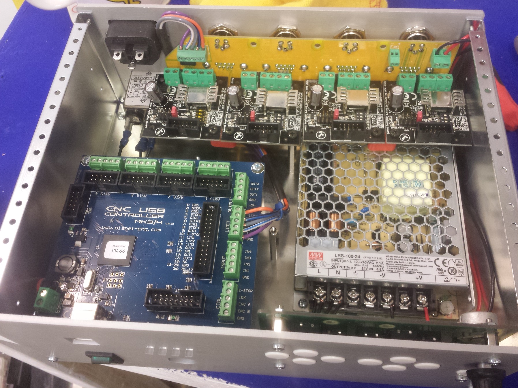 7. As the control box which came with the machine had a faulty x axis driver I didn't want to exchange it for another cheap one, so I asked a few question on here and got some very good responses, all of which were pretty much above my head. As I have already purchased the Planet CNC software I thought it would make sense to purchase their own control box as I think the support they can provide would be very beneficial to myself being a complete novice. The box arrived on Monday, only ordered it on the Friday so I was very impressed with the delivery time. Once arrived I unpacked it, looked at it a bit confused then managed to find a spare half hour to start assembling it. Work was halted though when I realised my soldering iron was at home.