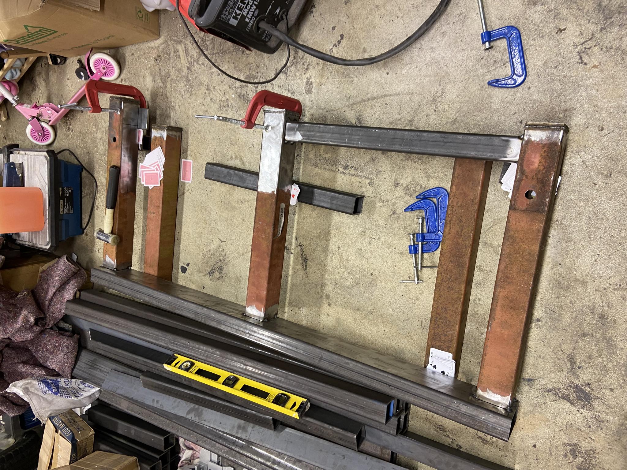 I have scavenged some 80x80x3 box section from work; I have redesigned the top of the frame and the main leg uprights to use this, the rest will be 60x60x5 & 60x120x5 as previously planned. The price of steel is insane at the moment, it's going to cost £750 for the rest of the steel I need - my original cost was £500 when I priced up the entire frame a couple of years ago!! I've been trying to figure out if I've over engineered it, compared to most other designs I've looked at I seem to have an awful lot of steel in there.