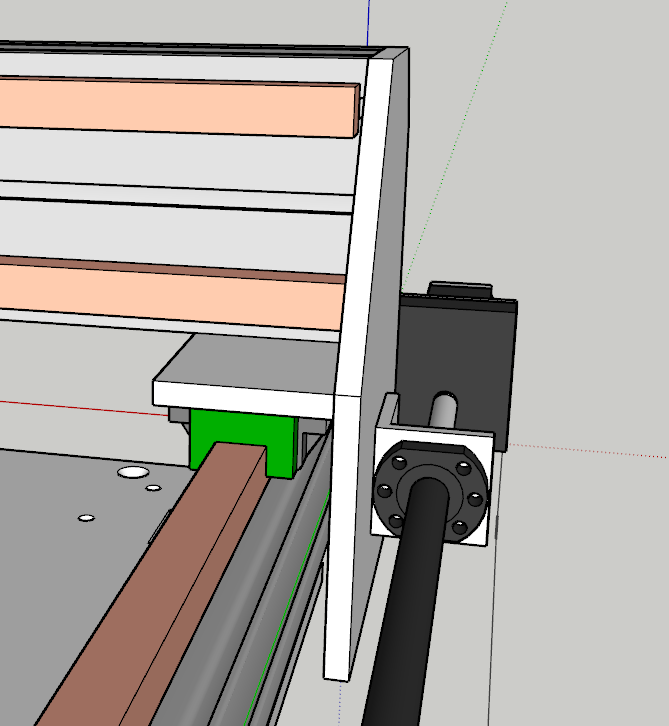 I've also added bracing from the y axis rails to the base plate. Do you think it would really help on the x axis too? Those braces also serve as the new plates for the bearing supports for the ballscrews.