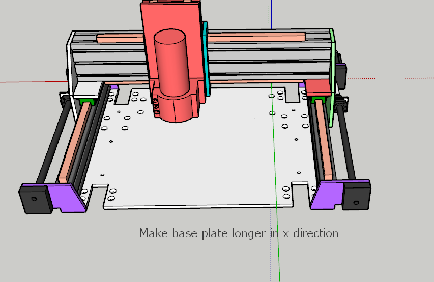 machine base is a tooling plate of 10mm aluminium. It has a few holes here and there, which I've modelled in sketchup, so excuse those please.