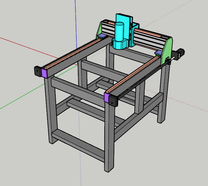 Been a while, but this is still being built. My linear rail, bearings, ballscrews, supports etc from Fred at BST should be here in a few days. Can't wait. I've changed my design a little bit. It will now be bench mounted, so the base is a lot shorter. See below. I've also swapped out the aluminium extrusion in favour of 50x50mm steel box section. Space isn't a major problem, so I don't have any problem with the motors sticking outside the envelope of the machine. Other than that, is there any other reason I should go with belt driven ballscrews?