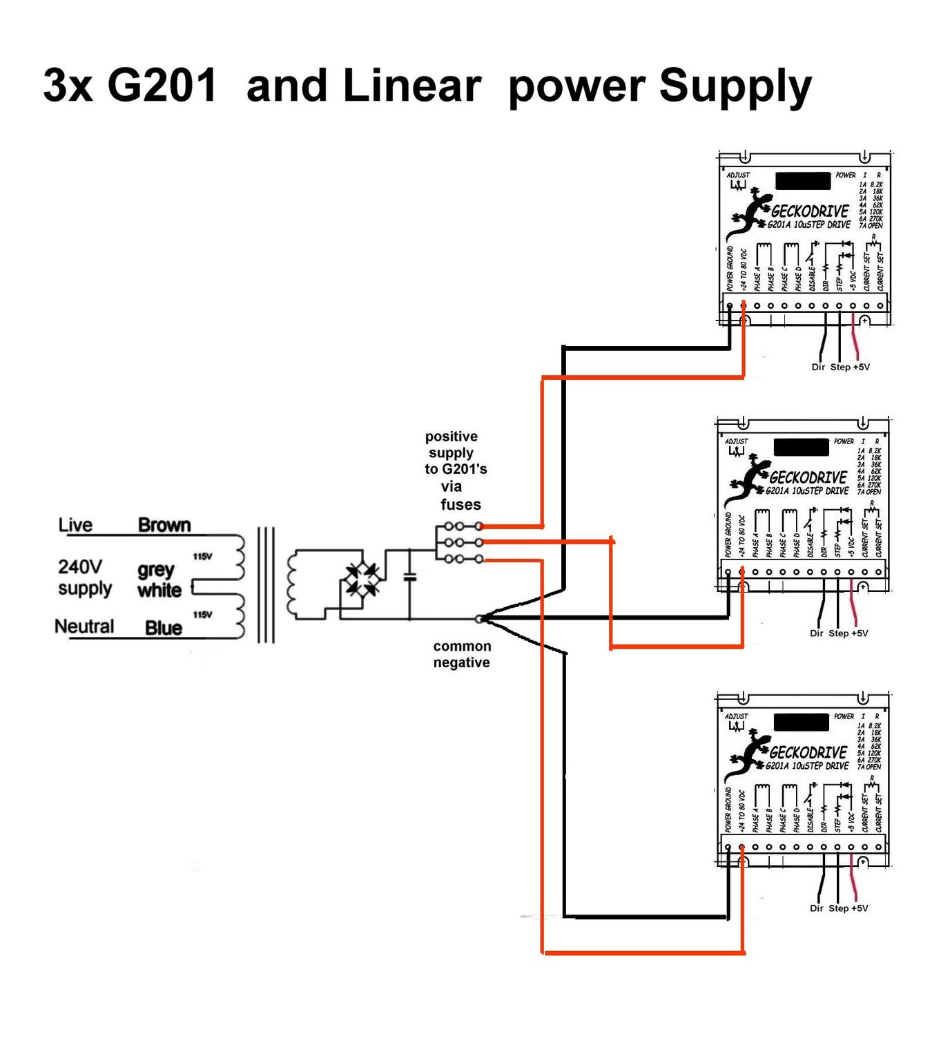 In addition you need a +5V supply to connect to the G201 stepper drivers & solid state relays