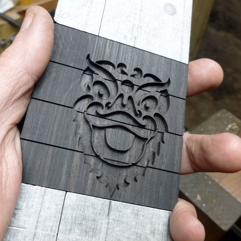 I've just recently finished this project for a local guitar builder. He tends to supply his fingerboards as flat oversized stock which I'll pocket about a millimetre deeper than the pearl thickness and then he sands down to where he needs the surface/radius etc. So as it is, it's not a finished piece, just my CNC bit.