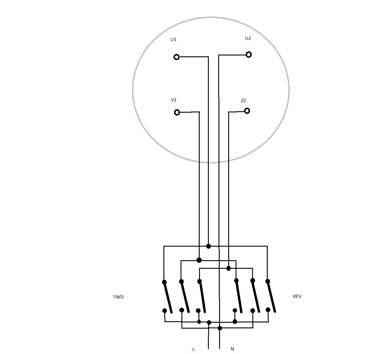 So this is what I think I need to reverse the single phase with the two contactors I have in the machine: