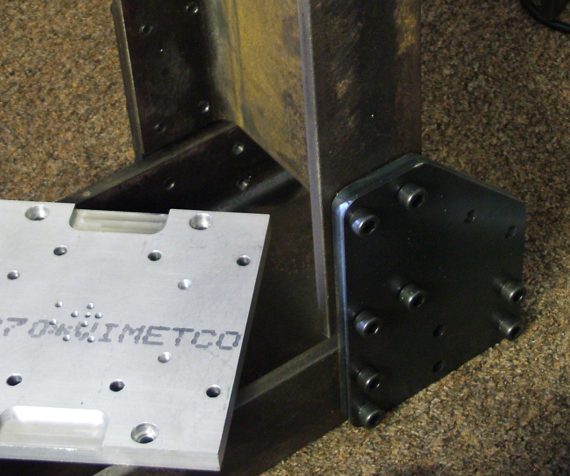 Thanks to the wonders of CNC the holes laser cut in the 12mm plates line up perfectly with the holes I drilled and threaded in the RSJ.