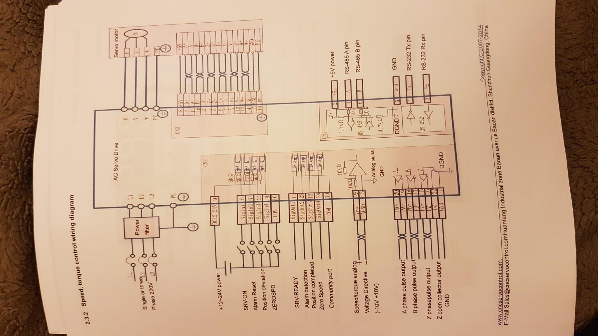 I emailed CS labs for help, asking if they could do a quick connection diagram for a servo drive and for VFD ( literature supplied), as none on the diagrams on their web site, fully matched up with the drives I have.