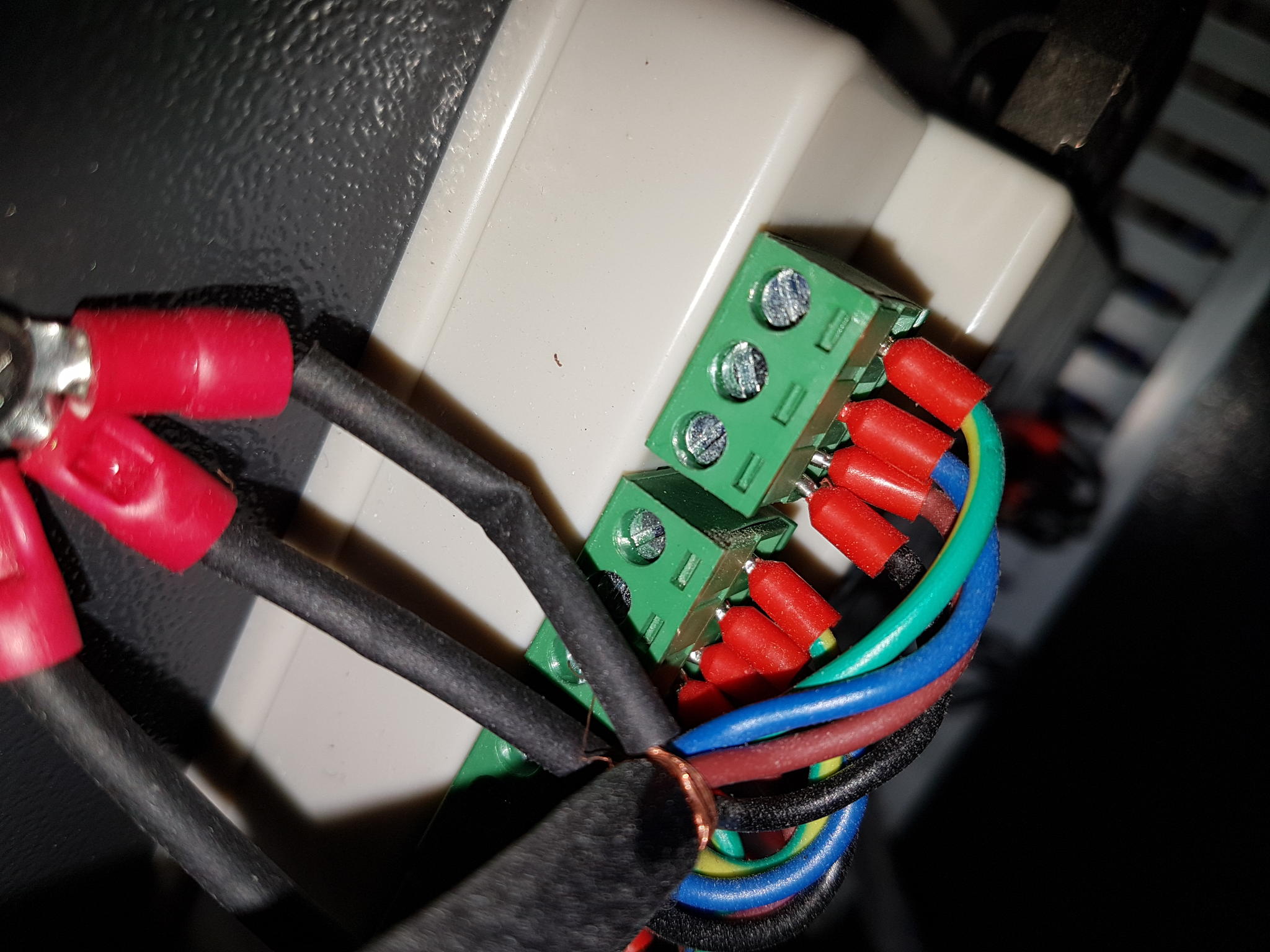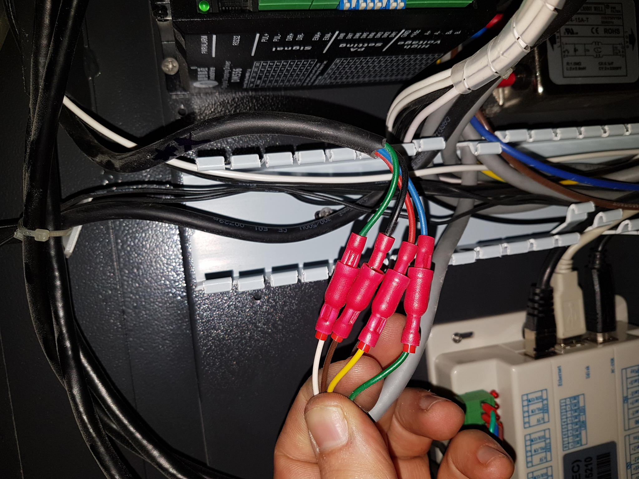 Could you bypass the relay and connect the motor cable directly to the drive? Blue wire to A+; red wire to A-; green wire to B+and black wire to B-