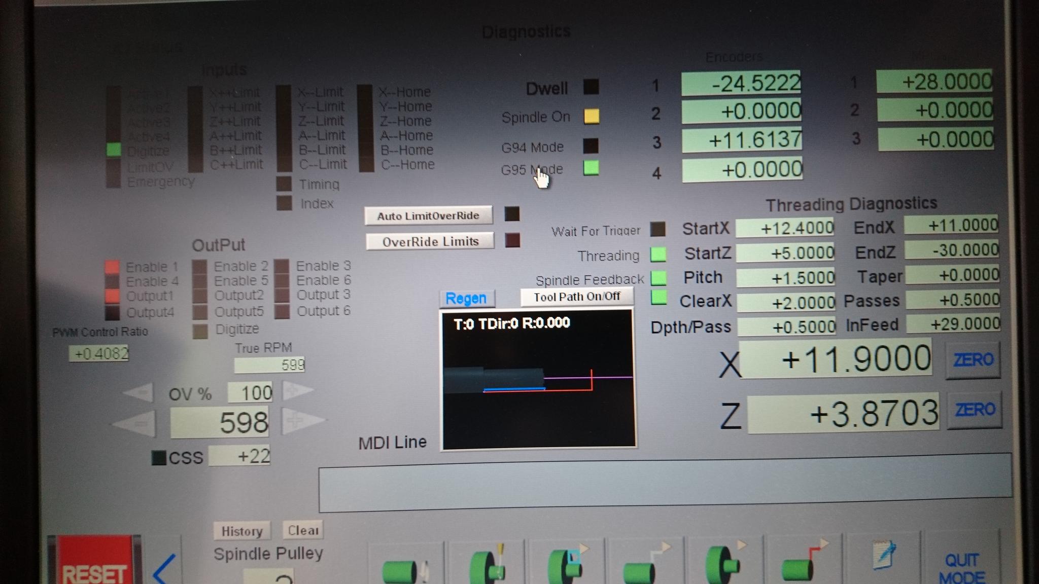 So basically I'm trying to cut some threads on my Boxford Model B that I converted to CNC and am using Mach3 to control it.