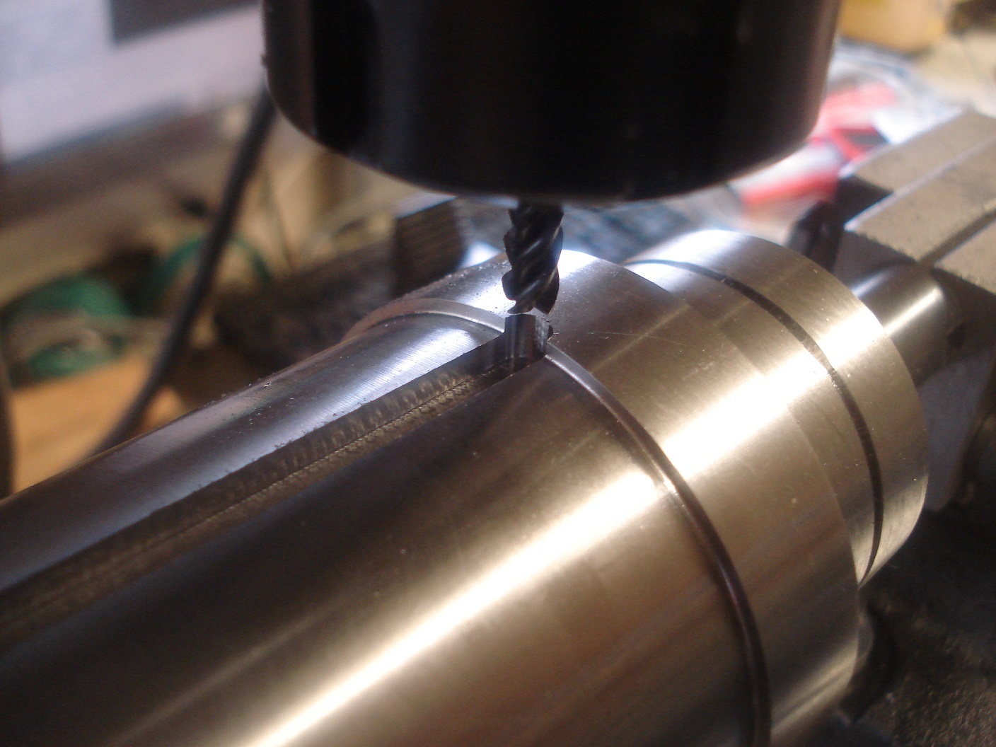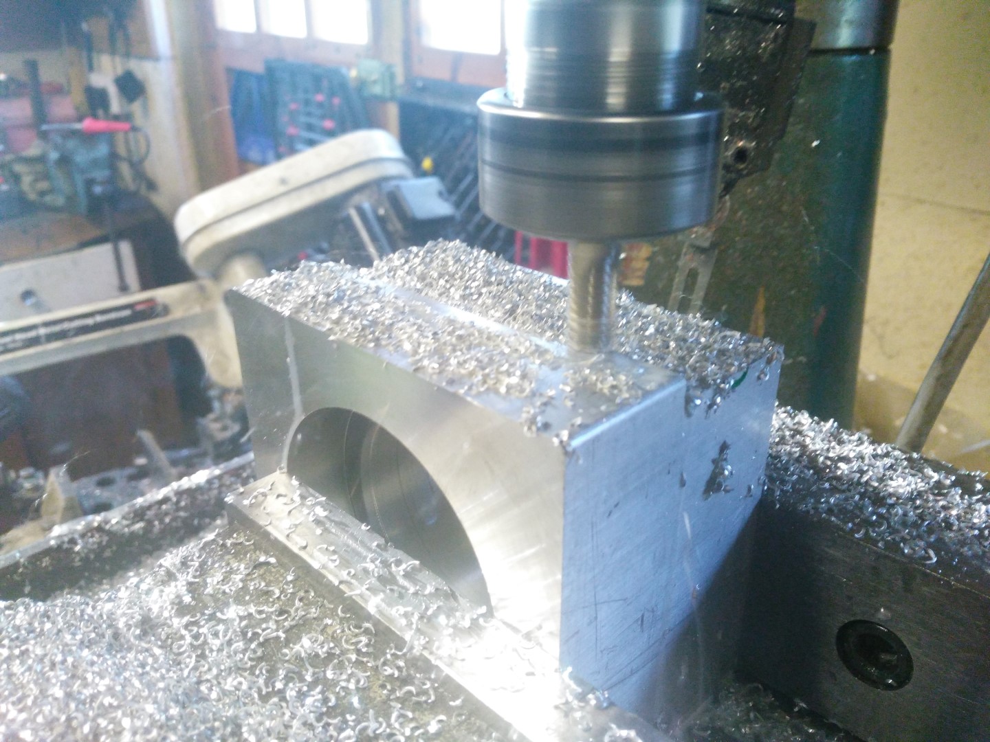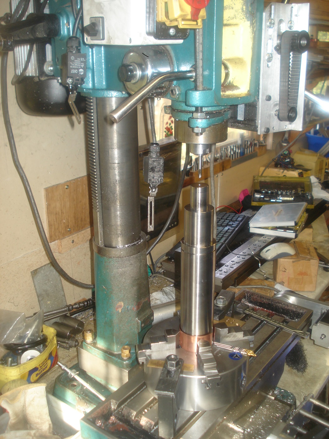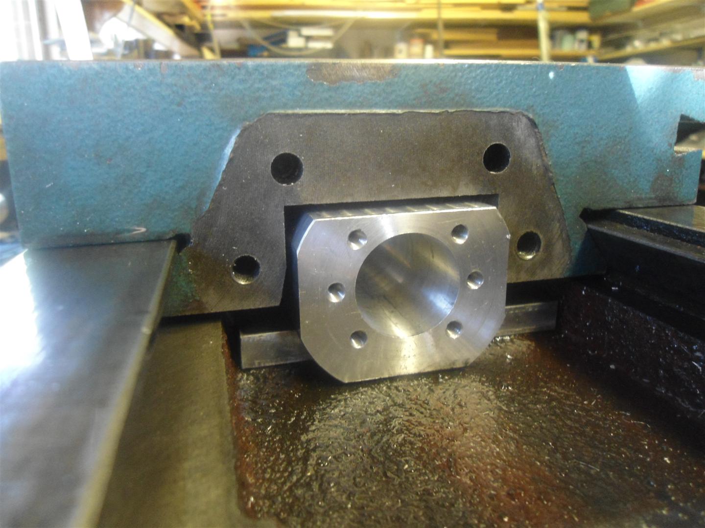 About the only change I've made to the machine recently is to add a spacer block of steel under the column, to drill the end of this shaft: