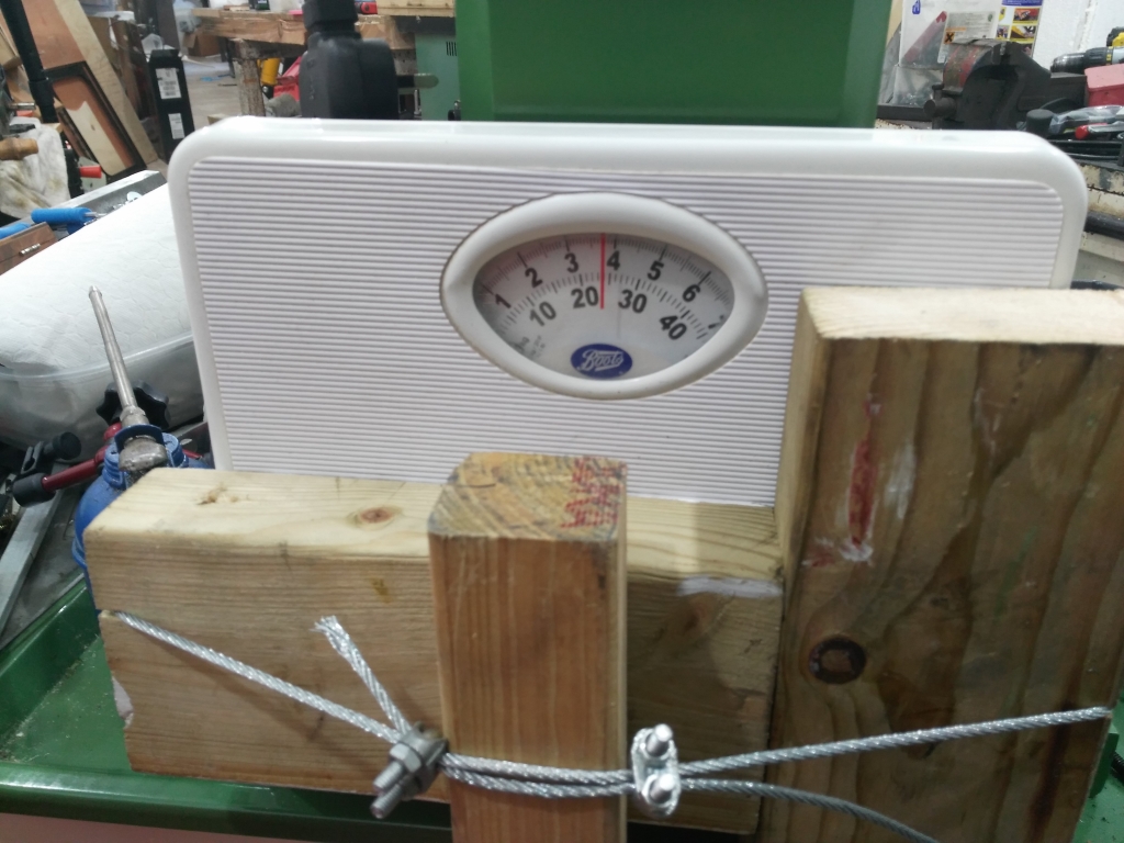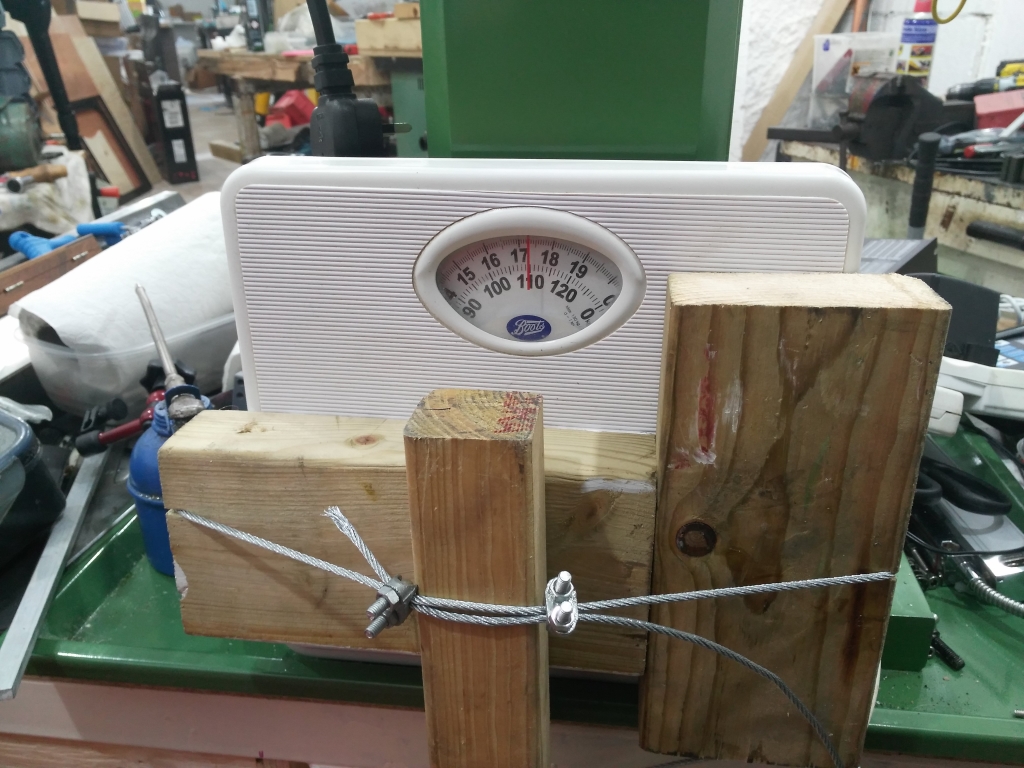 Tests on my Y axis shown below. 1st picture shows controller, driver, motor and steel cable attached to scales. Bathroom scales indicate 130kgs @ 0 (having gone round once) and a further 25kgs before they hit the stop at 155kgs. Calculations indicate that with 4.2A max force should be over 200kgs.