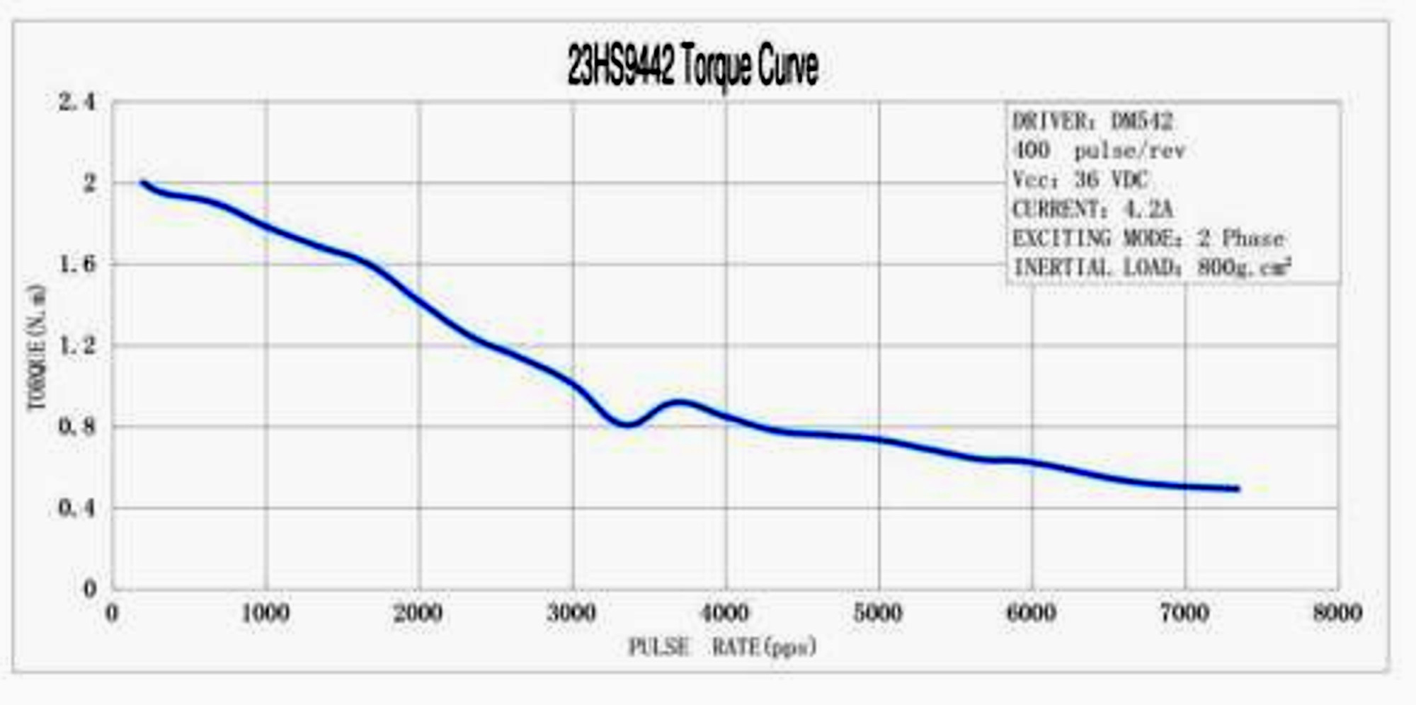 How fast can the motor turn while producing this force?. Stepper motor specifications generally only quote the holding torque - useful only if the motor is not turning. Getting a torque curve for the motor you are going to use is paramount - if you cant get one don’t buy it !!. Hybrid stepper, bipolar 4 wire versions are generally best. A torque curve for the popular longs motor 23HS9442 indicated I could get 1Nm (140 ozin) at 450 rpm.