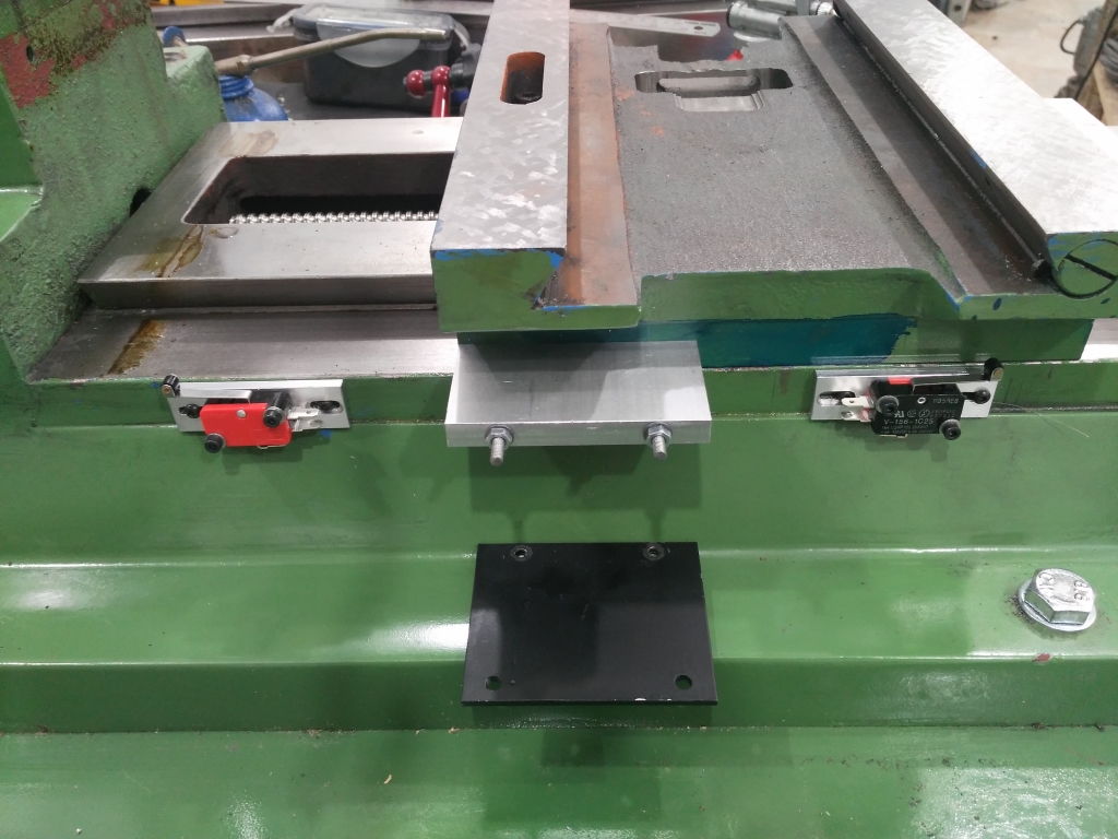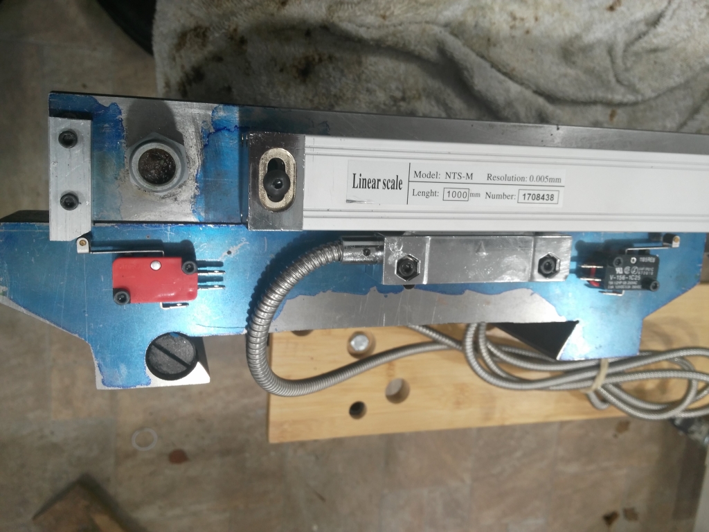 As this conversion will use glass scales I have used the Y scale bracket to trigger the microswitches. The rear of the saddle has the X limit microswitches, and the left of the saddle the Y. I will upgrade these at a later date to improve the homing accuracy using a latching optical disc sensor I read about here :-