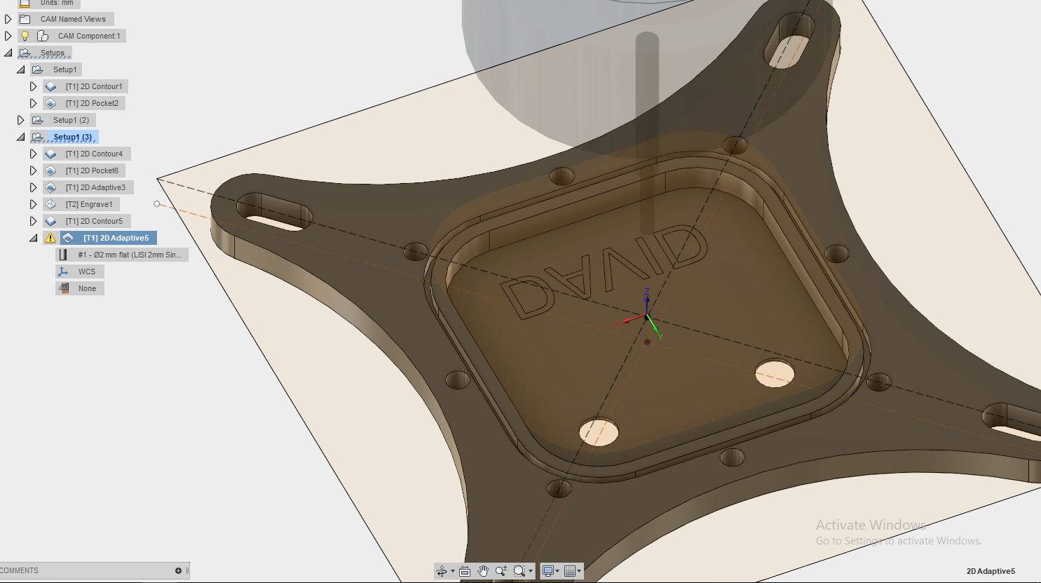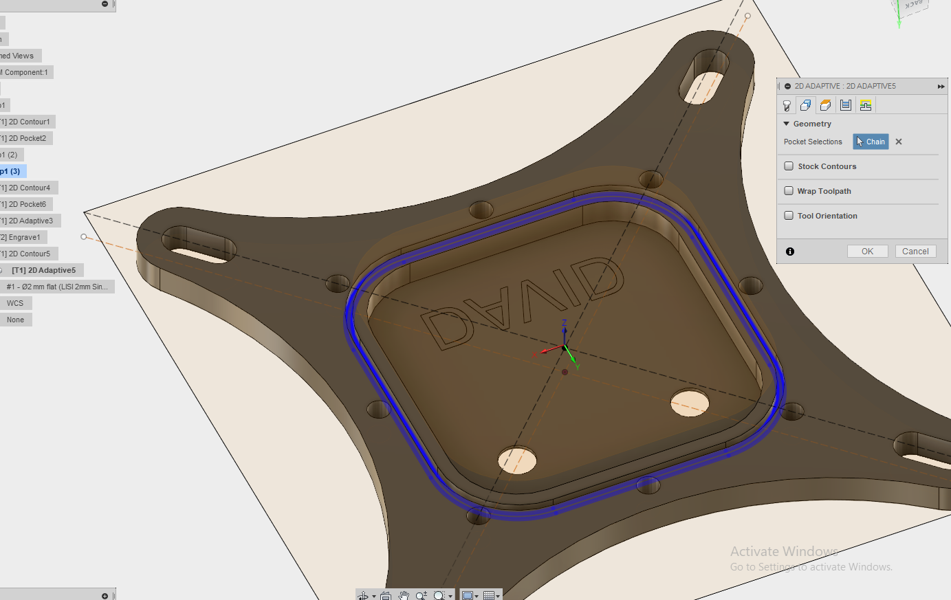 For some reason fusion will not allow me to perform a small pocket of 2mm in my part no matter what operation i try. does anyone have ideas why?