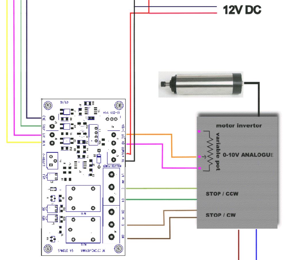 My Microrouter has a Cable Porter router fitted. I have worked out this is controlled via a Sprint 400 board with the RPM control coming via a Spindle 5 Digital tp Analog converter outputting 0-10v ( I haven't found what actually turns the motor on yet).