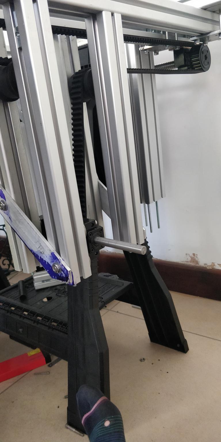 Excuses It helps to see pics. Its not a good idea to have a belt joining the two screws and then using two motors . Either 2 motors or 1 motor with one belt over both screws.