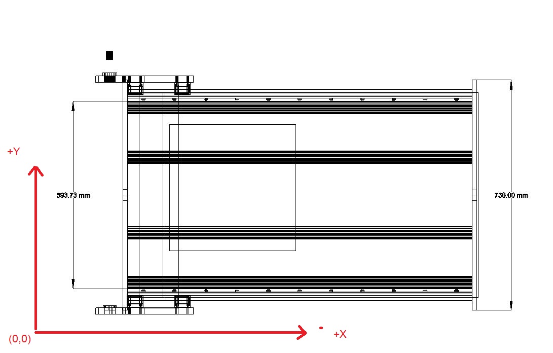 Also get you axis nomenclature clear. If you assume that the bottom left corner of your machine (looking top view) is 0,0 then the Y axis is the axis between the gantry sides and the X axis is the longest axis. Z zero is the topmost point of travel on the z axis.