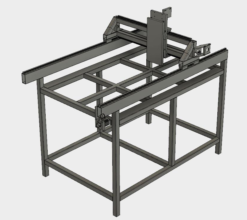 A partial view of the gantry but it shows all the important bits. There are also a couple of short upright sections of 50x50 bracing top rail to lower rails not shown on the picture.