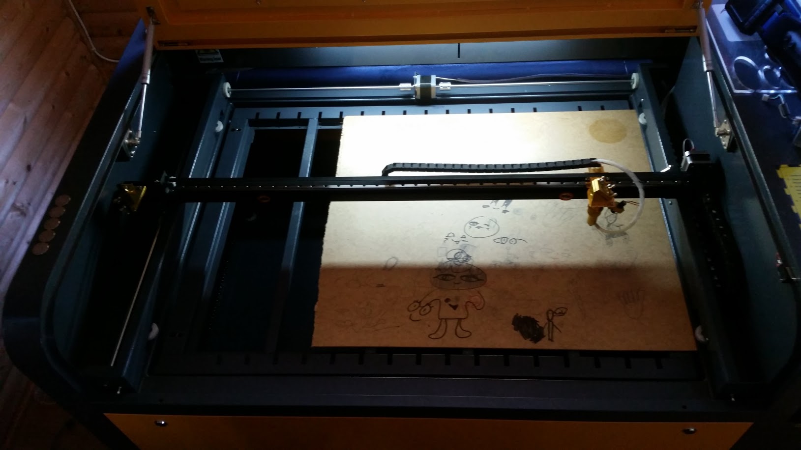 The machine will do engraving just fine, at speeds of up to 400mm/s in X axis. But as soon as Y motion is engaged in any way(besides moving a scan line down) everything goes to **** - terrible resonance, repeatably bad cuts, i suspect due to windup because of couplings, etc. It cannot cut/draw a straight circle at 25mm/s. Waving cuts all over the place at certain travel angles irrespective of speed (10-200mm/s). Trying to draw anything over 250mm/s stalls the motor, probably due to windup induced racking. Which excludes any small detail work where lots of stops and direction changes are present.