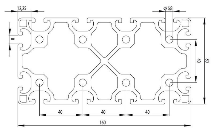 40 series aluminium profiles (80x80 and 80x160)